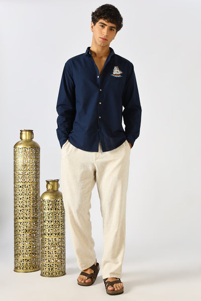 Midnight Nomad Navy Embroidery Box Fit Shirt