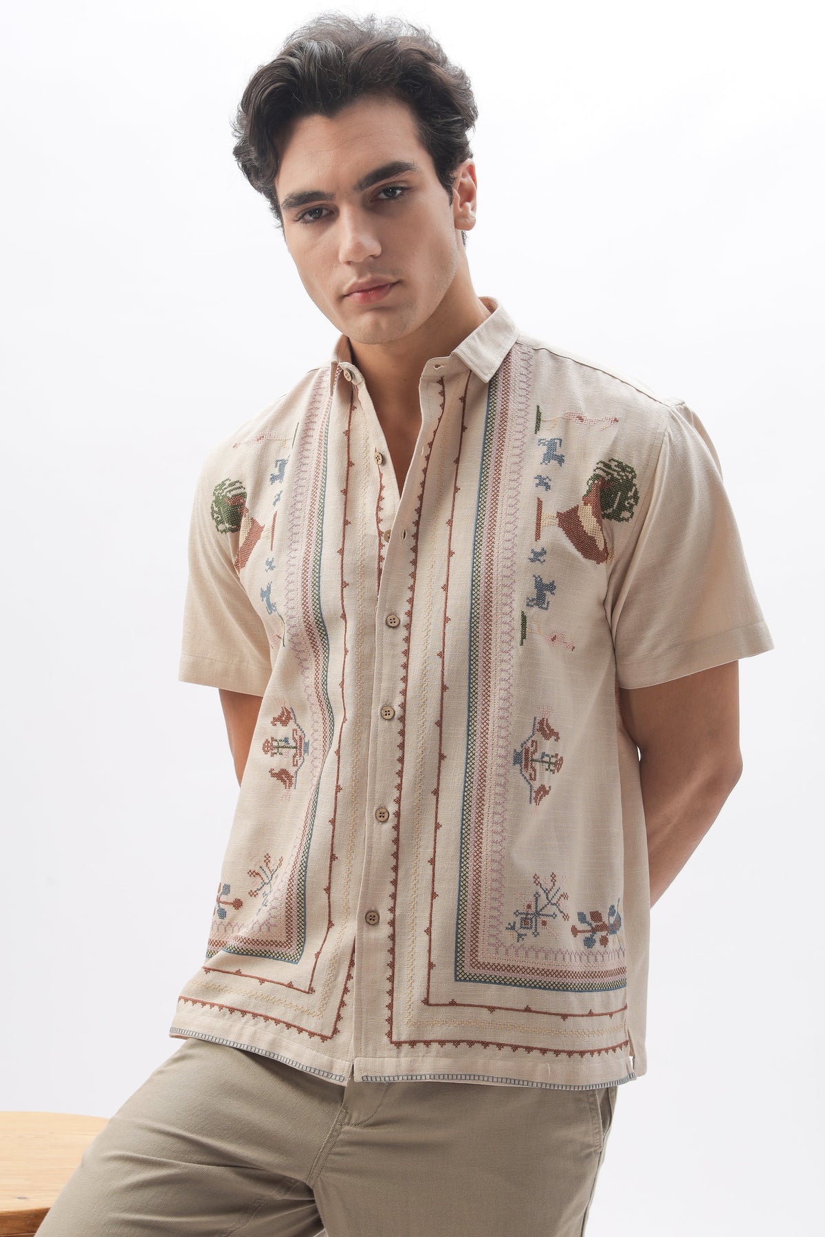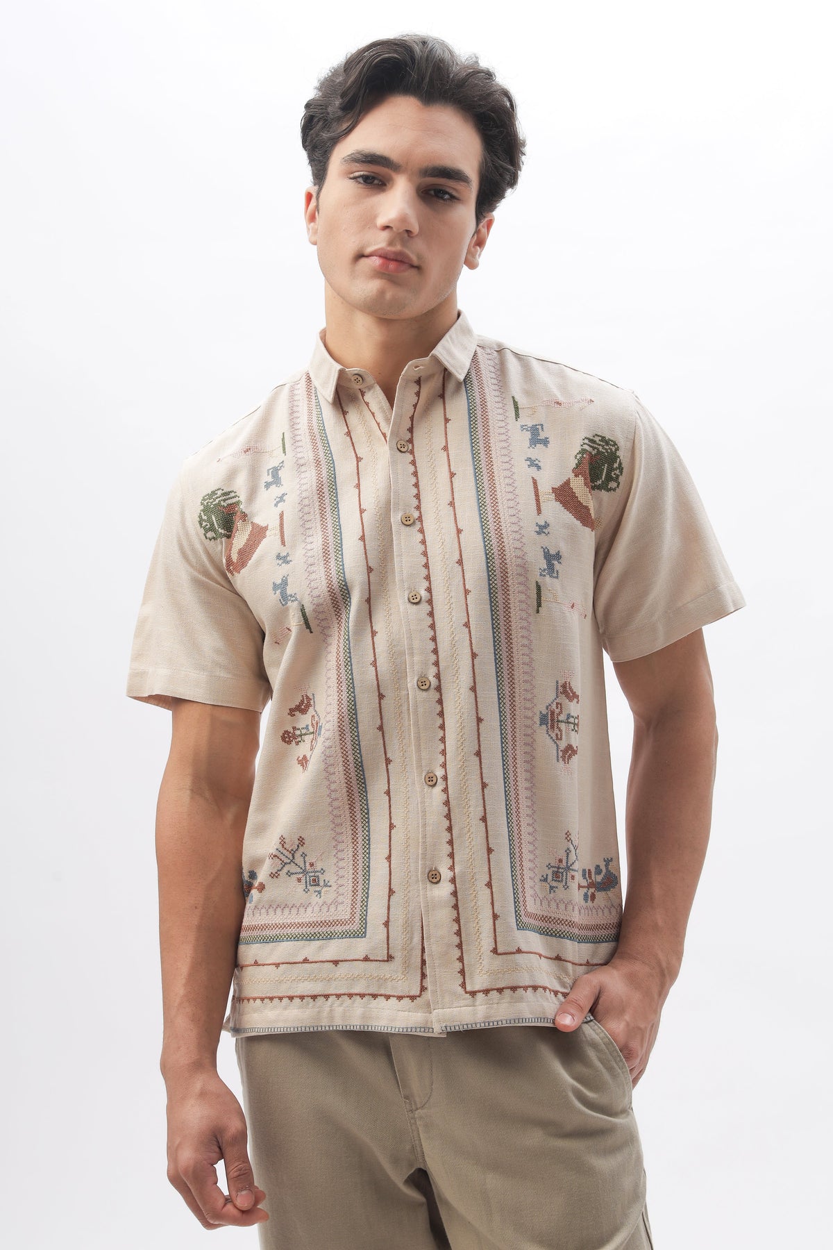 A pixelated tribute to the soul of Sahara. This shirt draws its graphic code from the rich desert crafts of Bhuj, bringing together symmetry, nostalgia, and a digital folk twist.