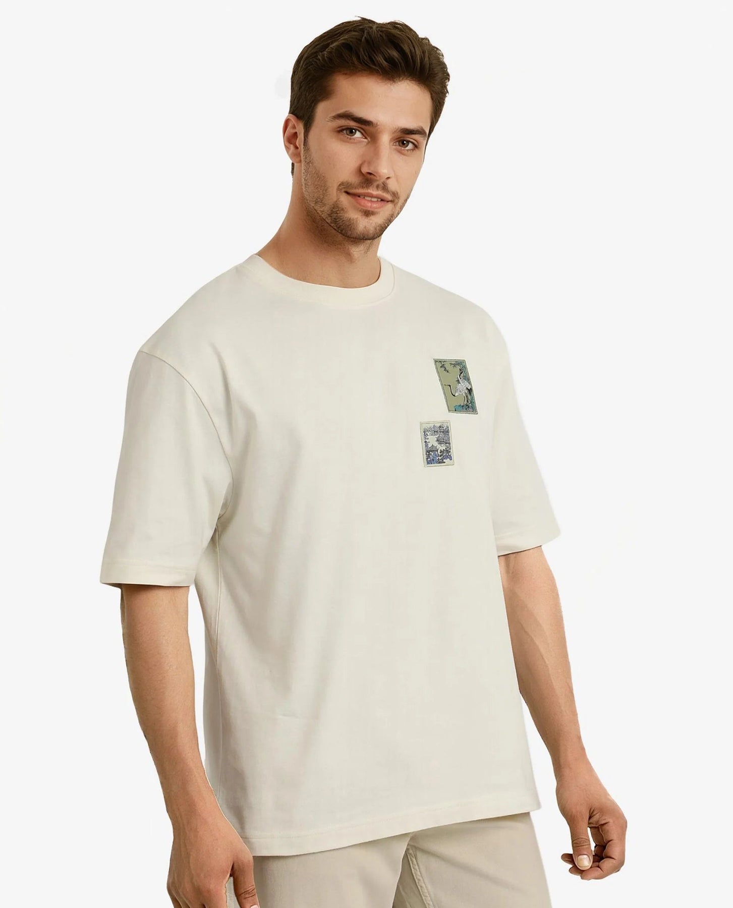 What makes it different are the small things. Two quiet graphic patches stitched on the chest. Each one carries its own design—minimal, sharp, and considered. They break the flat space without turning the shirt into a billboard.