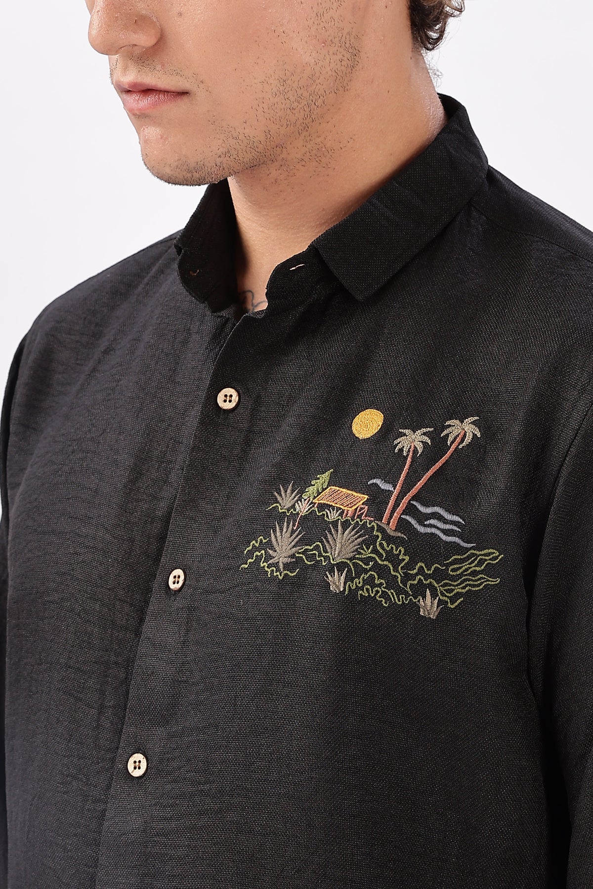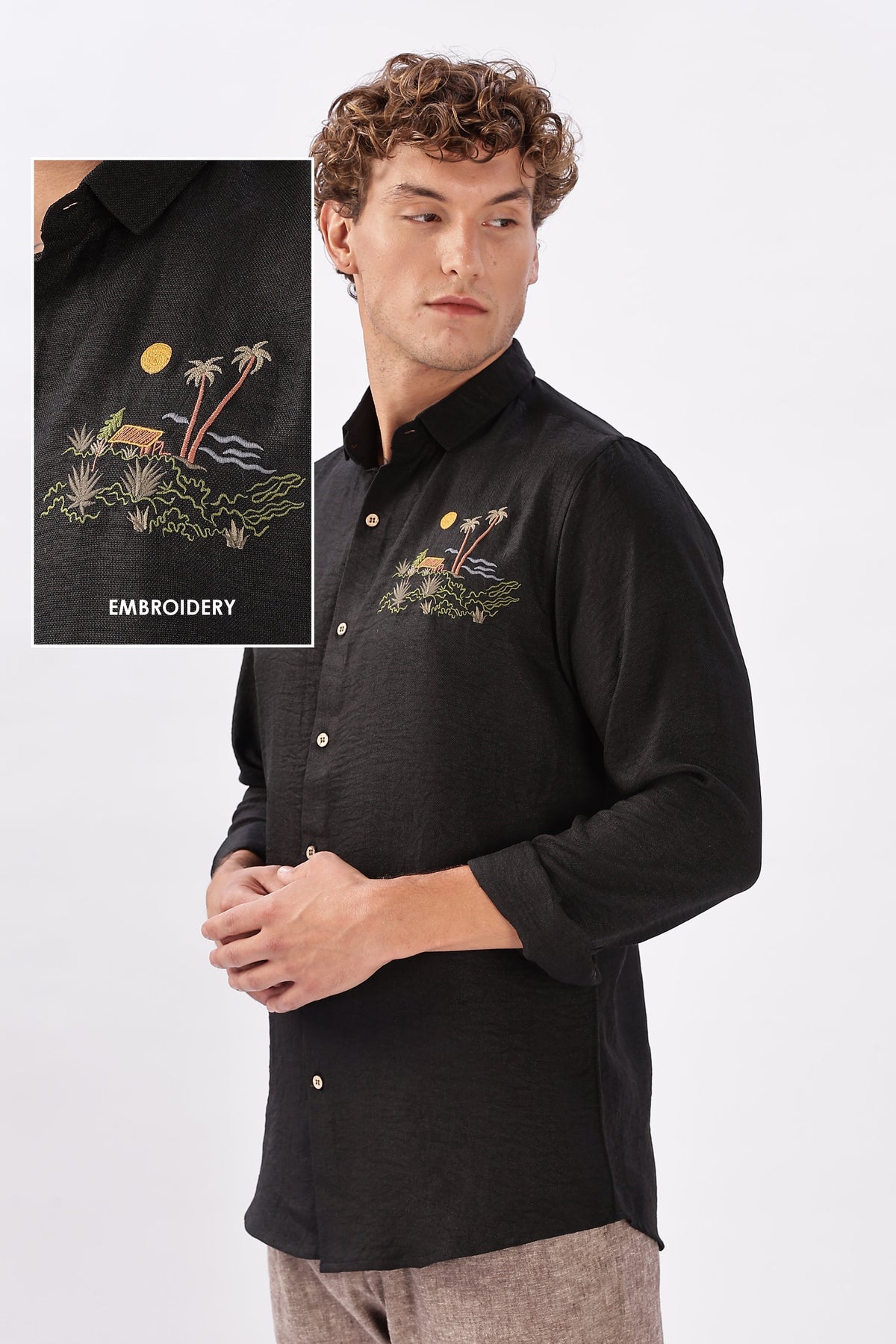 Sun’s down. Waves are whispering. Somewhere in Singapore, a beach shack lights up under moonlight and this shirt captures that exact moment.